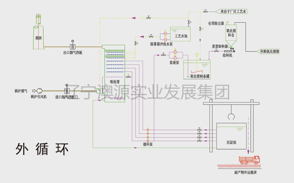 氧化鎂法濕式煙氣脫硫工藝流程圖—外循環(huán)